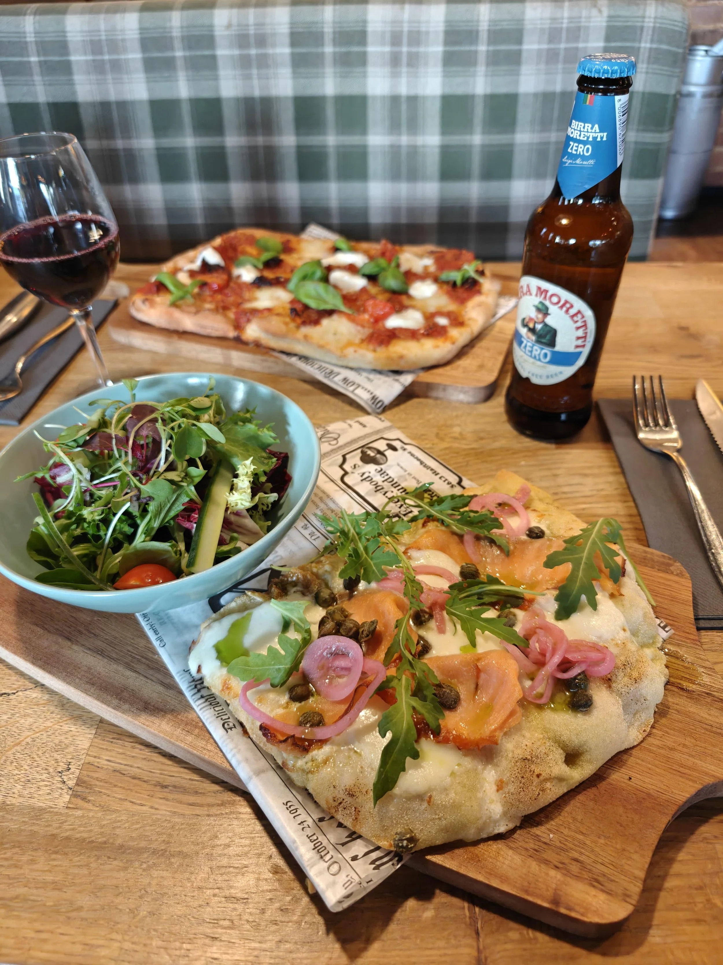 Valitsemasi puolikas pinsa ja talon viher- tai caesarsalaattia (VL)